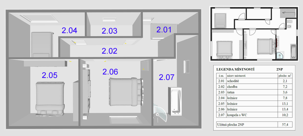 dům DORINE 201 , 4+kk / 5+kk , užitná pocha 116m2 , zastavěná plocha 65m2